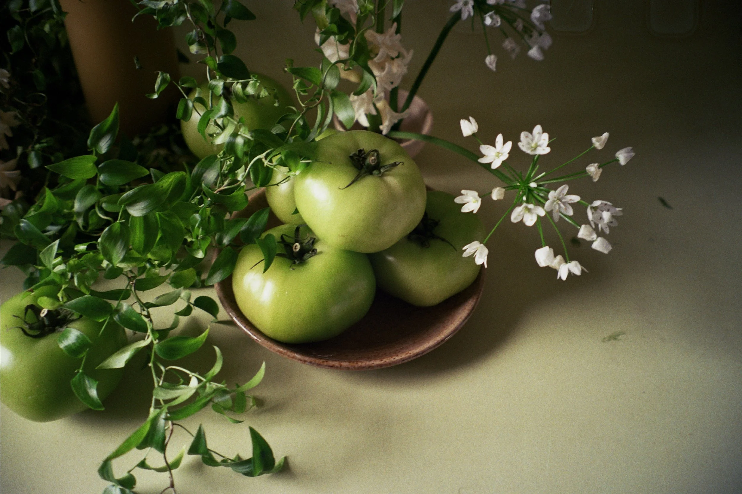 The two central works, Softly, Gently and Unyielding, balance fragility and resolve. Composed of flowers and humble produce, their natural materials offer quiet support and speak to the deeper rhythms and wisdom inherent in nature.
